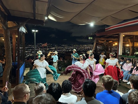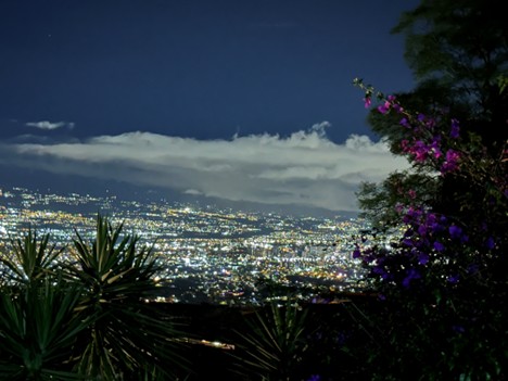 On the way back through San Jose to fly out, we were fortunate to dine at an outstanding restaurant in the Escazu part of town (very hilly area – make sure your taxi has enough juice to make it up the hills with your group. We had to keep circling around until we found a fairly level approach or the van dogged out!) The dinner was a buffet of the usual…rice, beans and stewed meats, but the night VIEW was fantastic! They also had a traditional dancing show at the end of dinner that was fun to watch and beautiful on its own with colorful skirts flying in patterns, though a little loud. Go for the view!