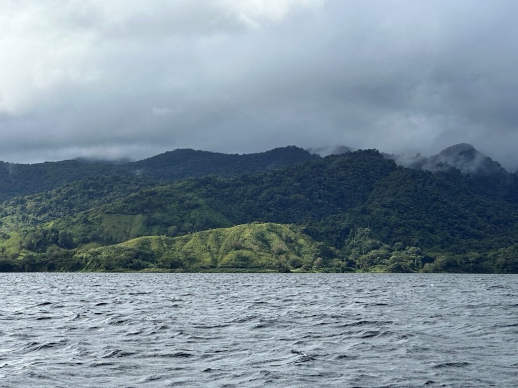 Morning started with a peaceful, yet cloudy boat ride around Arenal Lake with a drop off on the opposite side. The surrounding terrain was not as beautiful as it would’ve been had the sun been out, but hey, it didn’t rain! So, we took the win. As you know, when you’re on holiday, you either go on the tour or stay in the hotel, no matter what the weather!